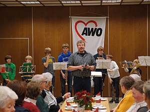 Die Vorfreude auf das Weihnachtsfest beginnt praktisch mit dem 1. Advent. Die Kinder freuen sich auf den Nikolaus und zählen schon am Adventskalender die Tage bis Heiligabend. Genau den richtigen Termin wählt die AWO Leutershausen seit Jahren, um sich mit ihren Mitgliedern, Freunden und Senioren auf die kommenden Wochen und Tage einzustimmen. Während die Außentemperaturen alles andere als weihnachtlich waren, wehte der Duft von frisch zubereitetem Kaffee, selbst gebackenem Kuchen und Tannengrün durch den evangelischen Gemeindesaal, als die AWO-Vorsitzende Ingrid Scholz die Gäste willkommen hieß. Die evangelische Jugend – Posaunengruppe unter Gerd Schmitt stimmte mit einigen Musikstücken die Adventsfeier ein. Schmitt hatte für die Senioren „ein richtiges, deutsches, altes Lied“ mitgebracht: „Maria durch den Dornwald ging“. Der Leiter meinte, dass die Arbeit mit den Kindern richtig Freude mache und er würde sich freuen, im neuen Jahr neue Mitglieder begrüßen zu dürfen.