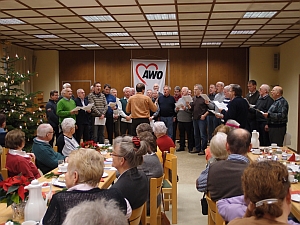 Grußworte kamen auch von Großsachsens AWO-Vorsitzendem Dr. Horst Metzler, der für die Beibehaltung der beiden Ortsverbände plädierte. Er lobte die kooperative Zusammenarbeit der beiden Ortsverbände und „nur im äußersten Fall soll ein Ortsverband Hirschberg gegründet werden“. Gesanglich bereicherte der MGV 1984 Leutershausen mit drei Weihnachtsliedern unter der Stabführung von Vizedirigent Dr. Rainer Cee die Feier und der Chor kam ohne Zugabe nicht vor der Bühne. Der Nikolaus (Carsten Ewald) hatte für jeden etwas mitgebracht und am Schluss durfte jede Besucherin einen schönen Weihnachtsstern mitnehmen.
